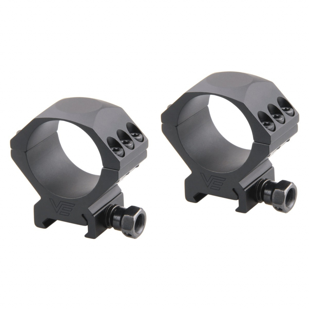 Диаметр колец 34 мм, имеют по шесть болтов на каждое кольцо. Сверхкрепкие кольца изготовлены из алюминиевого сплава имеют низкий профиль, высота колец от низа до центра 28 мм (1,1 дюйма).