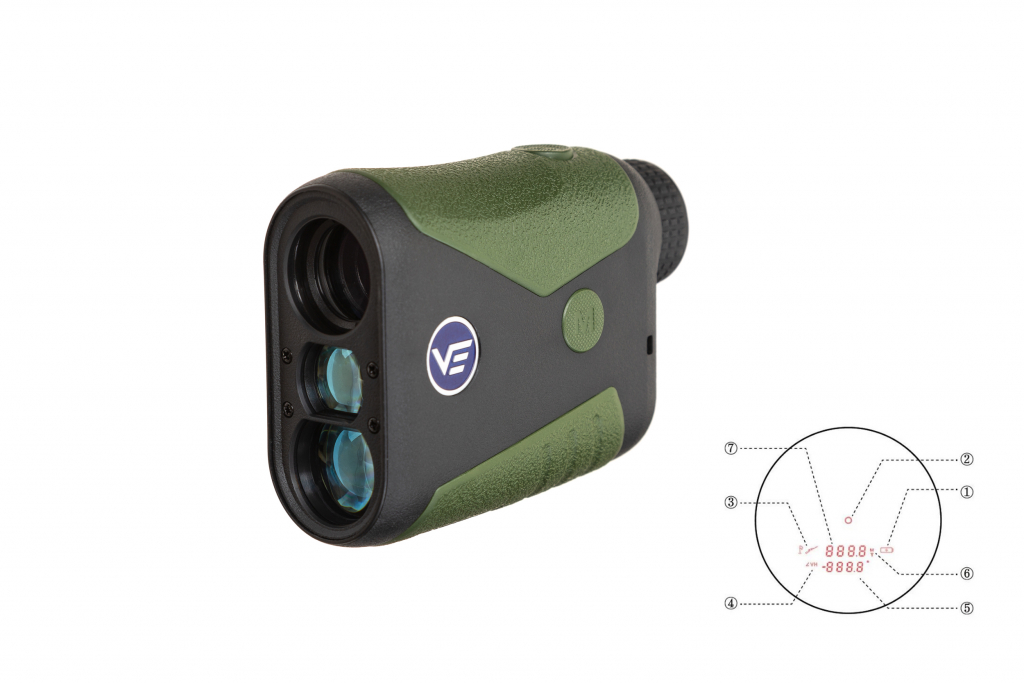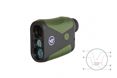 Vector Optics Forester 6X21 GENII – лёгкий, простой в использовании и компактный дальномер, который легко помещается в ладонь имеет фиксированное 6-ти кратное увеличение. Диапазон измерений дальномера: от 5 до 1500 м (5-1600 ярд). Измерения можно производить как в метрах, так и в ярдах. Измерение до объектов: дальность до здания - 1100 метров (1200 ярдов), дальность до больших деревьев - 825 метров (900 ярдов), расстояние до оленя - 640 метров (700 ярдов), расстояние до флага для гольфа - 410 метров (450 ярдов).