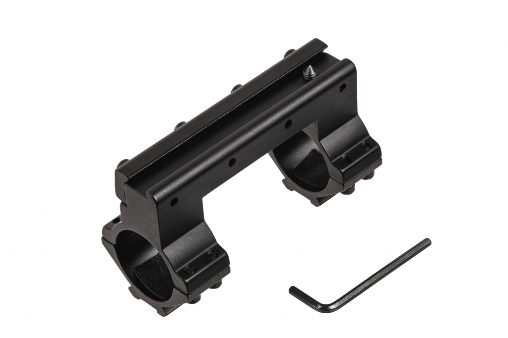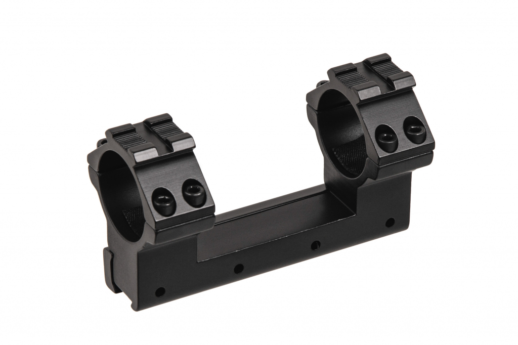 Моноблок предназначен для установки оптических прицелов с диаметром центральной трубы 30 мм на пневматические винтовки с крепление "ласточкин хвост". Моноблок уникален тем, что имеет сверху на полукольцах крепление Вивер/Пикатинни для установки коллиматорного прицела, фонаря, ЛЦУ, либо другого аксессуара.