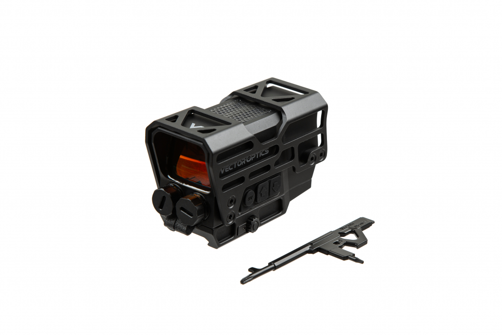 Комплектация: защитный кожух из алюминиевого сплава, руководство пользователя, аксессуар-отвертка Vector Optics в виде карабина, чистящая салфетка.