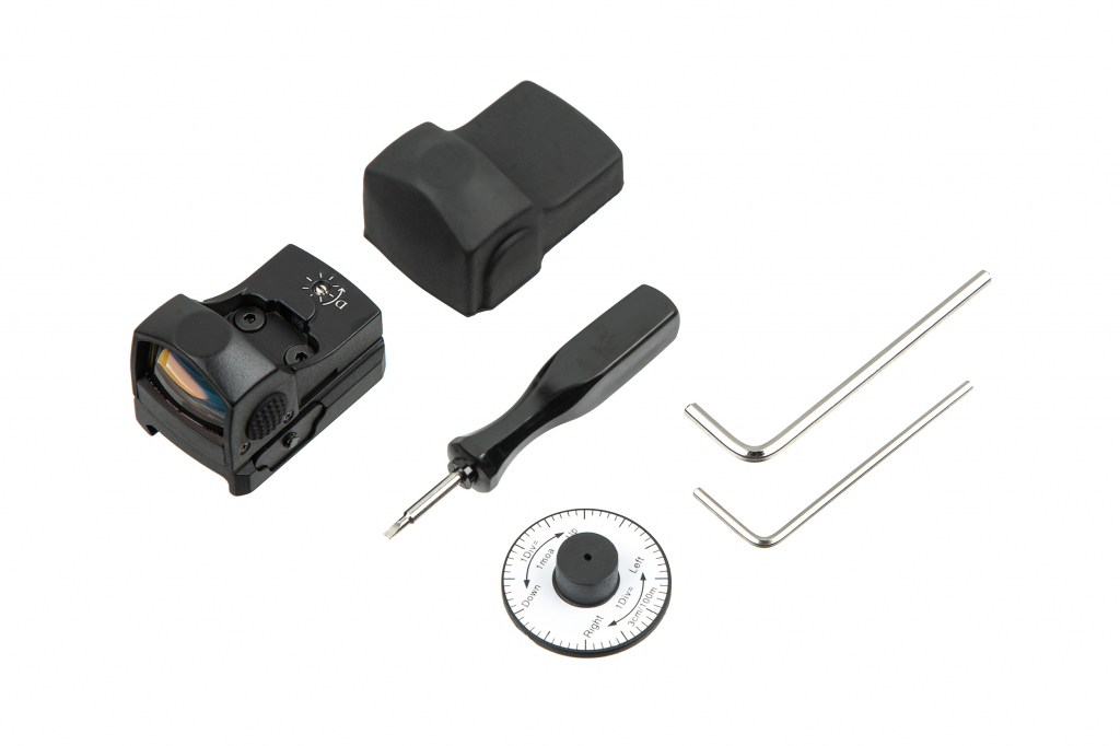 Комплектация: крепеж на Вивер/Пикатине, резиновый чехол, диаграммная пластина MOA, шестигранные ключи, отвертка и салфетка для очистки.