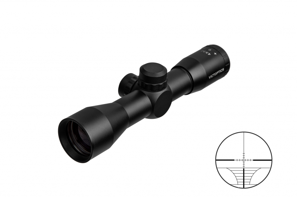 Оптический прицел Vector Optics B1 4x32C имеет фиксированную кратность 4х, компактный размер (длина прицела 191 мм), лёгкий вес (вес прицела 230 г), прицельную сетку R14 во второй фокальной плоскости, подходит для страйкобольного и пневматического оружия. Водонепроницаемый и ударопрочный корпус изготовлен из крепкого алюминиевого сплава 6061-Т6 с черным матовым покрытием. Внутри прицел продут азотом, чтобы избежать запотевания линз. Стекло оптики имеет антибликовое многослойное покрытие. Диоптрийная настройка в диапазоне от -2 до +2 помогает пользователю подстроить прицел под свое зрение. Диапазон регулировки вертикальніх и горизонтальніх поправок 90 MOA с ценой клика 1/4 MOA. Комплект прицела включает в себя: одну пару колец прицела 25,4 мм на планку Вивер/Пикатинни, салфетку для обслуживания линз, крышки объектива и окуляра.