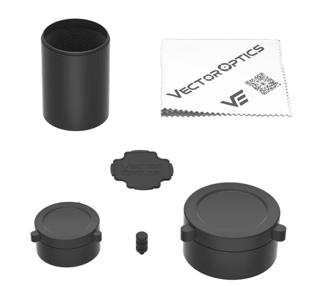 Комплектация: рычаг быстрого переключения кратности, пластиковый ключ, солнцезащитная бленда, салфетка для чистки, откидные крышки, кольца 30 мм на Вивер/Пикатинни.