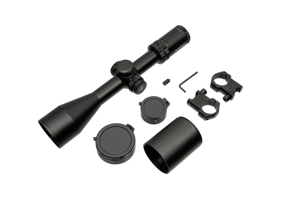 Труба диаметром 30 мм обеспечивает расширенный диапазон поправок по вертикали до 28 MIL, цена клика составляет 1/10 MIL. Боковая настройка от параллакса с 10 метров до бесконечности позволяет комфортно работать даже на близких дистанциях, а защищенные крышками барабаны предотвращают случайное сбивание настроек.