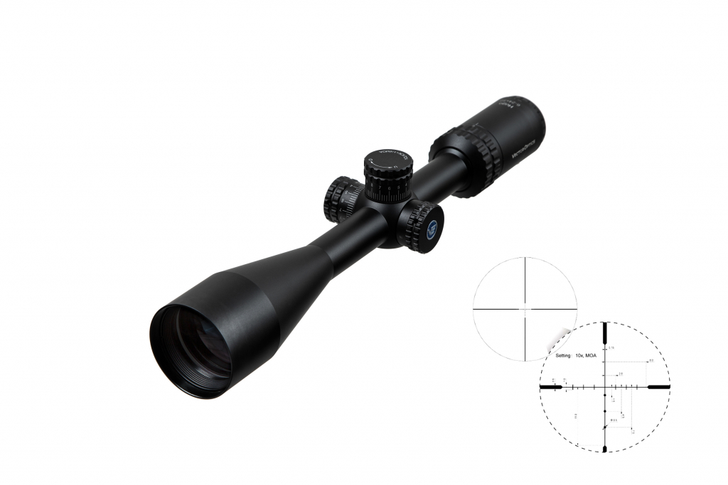 Удаление выходного зрачка составляет 100 – 105 мм в зависимости от кратности. Цена клика поправок – 1/4 МОА, барабанчики поправок имеют функцию блокировки. Корпус прицела изготовлен из высококачественного авиационного алюминия 6061 T6. Внутри полностью продут азотом для предотвращения запотевания линз внутри.