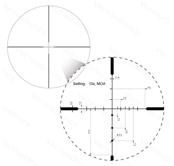 40 MOA (вертикаль) 40 MOA (горизонталь)