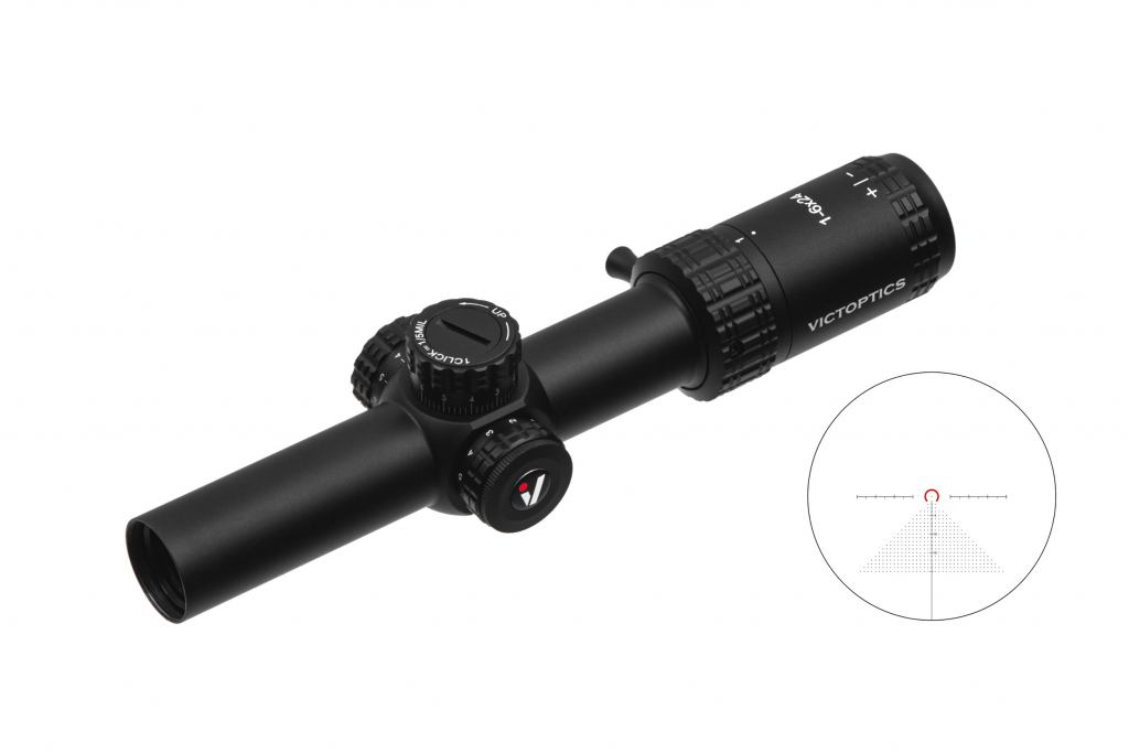 Оптический прицел S6 с увеличением 1-6х от фирмы Vector Optics, которая более 10 лет производит высококачественные прицелы и коллиматоры для огнестрельного оружия. Корпус, обеспечивающий водонепроницаемость и ударопрочность изготовлен из высококачественного алюминия 6061-T6 с прочным черным матовым покрытием. Внутренняя часть заполнена азотом, чтобы предотвратить запотевание линз. Стекло оптики покрыто многослойным антибликовым покрытием. Диоптрийная компенсация в диапазоне от -2 до +2 и диапазон регулировки по высоте и горизонтали> 50MIL (цена клика 1/5MIL). Сетка VI-CTSIX имеет 5-ступенчатую регулировку яркости подсветки . Питание от батарейки CR2032 (не входит в комплект).
