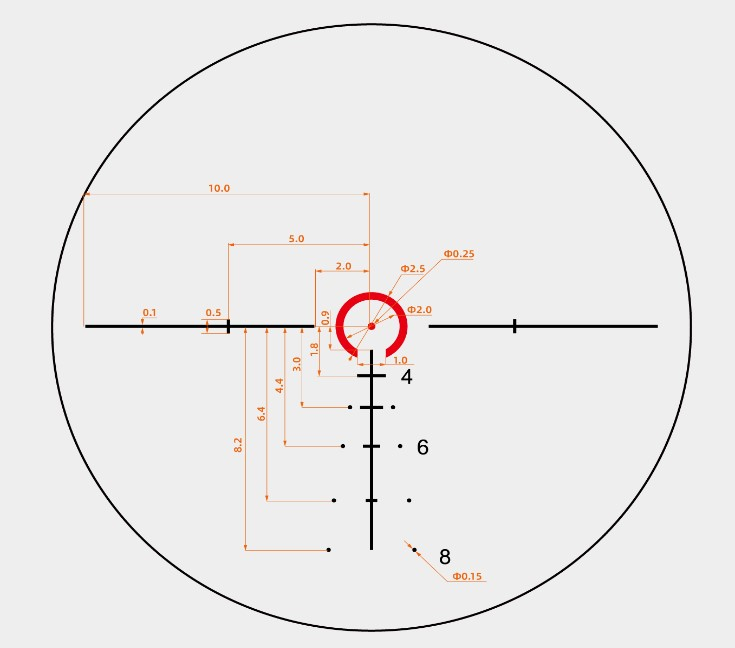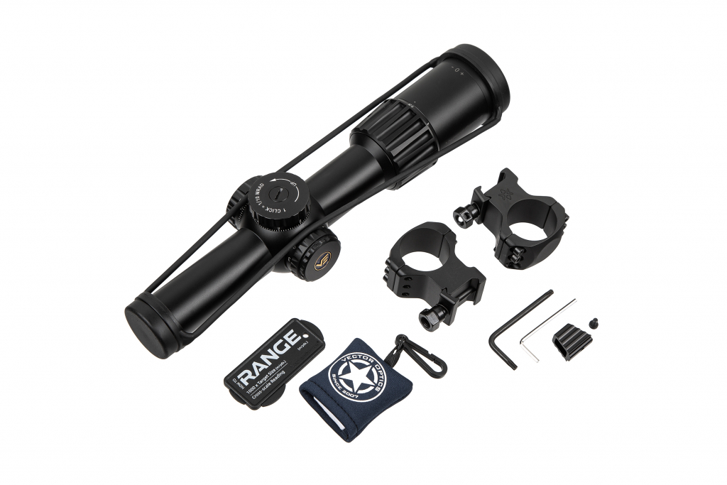 Прицел оснащен сеткой VTC-SMIL, расположенной во второй фокальной плоскости (SFP). Баллистическая разметка позволяет быстро вносить поправки по дальности и ветру без изменения настроек барабанов.