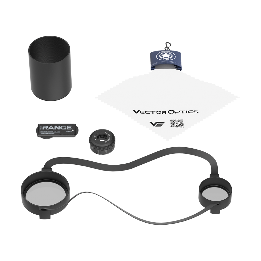 Комплектация: инструкция пользователя, пластиковый ключ, чистящая салфетка, солнцезащитная бленда, запасной барабан, кольца Пикатинни 34 мм.