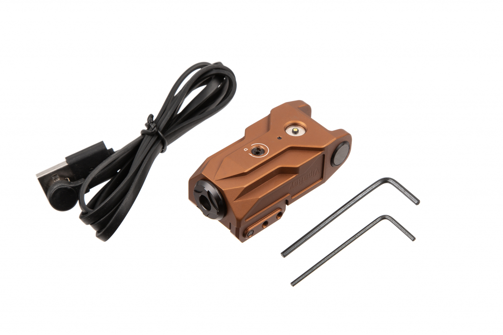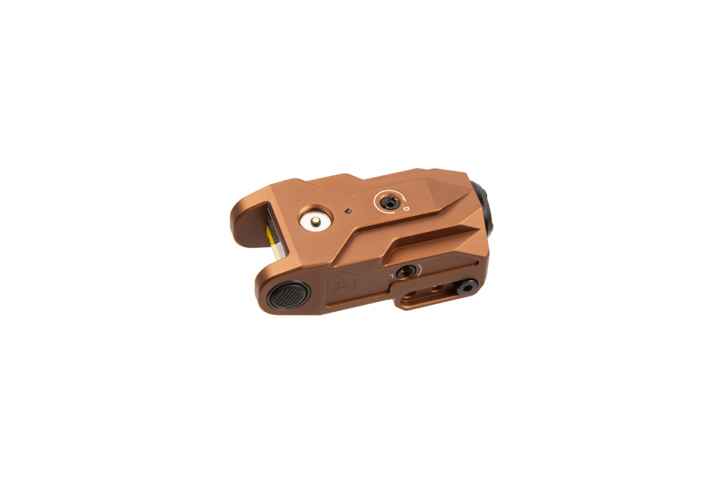 Тактичний низькопрофільний субкомпактний лазерний приціл з регулюванням по вертикалі та горизонталі, легка алюмінієва конструкція.