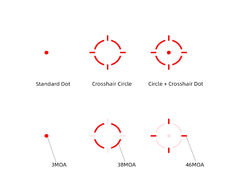 • Сонячне живлення: забезпечує додаткову енергію при яскравому освітленні, продовжуючи час роботи прицілу.