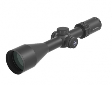 Труба діаметром 30 мм забезпечує розширений діапазон поправок по вертикалі до 28 MIL, ціна кліку складає 1/10 MIL. Бокове налаштування від паралаксу з 10 метрів до нескінченності дозволяє комфортно працювати навіть на близьких дистанціях, а захищені кришками барабани запобігають випадковому збиттю налаштувань.