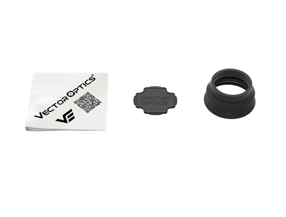 В комплект прицілу входять: інструкція користувача, серветка для чищення, пластиковий ключ, відкидні кришки, гумовий наочник, пара кілець 30 мм на планку Вівер/Пікатінні.