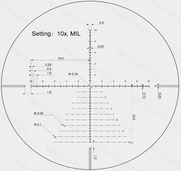 Прицільна сітка з центральною точкою 0,18 MIL забезпечує надточне наведення, а «ялинка» дозволяє швидко вносити поправки при повторних пострілах. Повне багатошарове покриття лінз гарантує яскраве та чітке зображення, а бокове фокусування починається вже з 6 метрів, що особливо зручно для стрільби на коротких дистанціях.