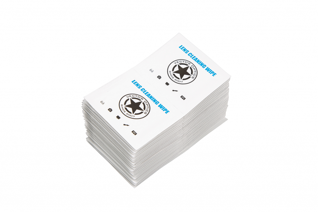 Набір серветок Vector Optics SCCC-03 - попередньо зволожені серветки для чищення лінз, безпечно та швидко очищають різні поверхні лінз, в комплект набору входить 50 окремо запакованих серветок.