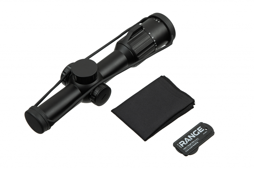 Прицел оснащен выгравированной сеткой VCO-2 MIL с центральной точкой 0.4 MIL, кольцом для быстрого наведения и «елочной» структурой для компенсации ветра и падения шара. Линзы с многослойным покрытием (FMC) обеспечивают четкое изображение, а корпус из авиационного алюминия T6061-T6 выдерживает нагрузку до 1000 G. Подсветка сетки имеет 11 уровней яркости, а защита IP67 гарантирует водо- и пыленепроницаемость. В комплект прицела входят кольца 30 мм на Вивер/Пикатинни, пластиковый ключ, руководство пользователя, запасной барабанчик поправок, откидные крышки и салфетка для чистки.